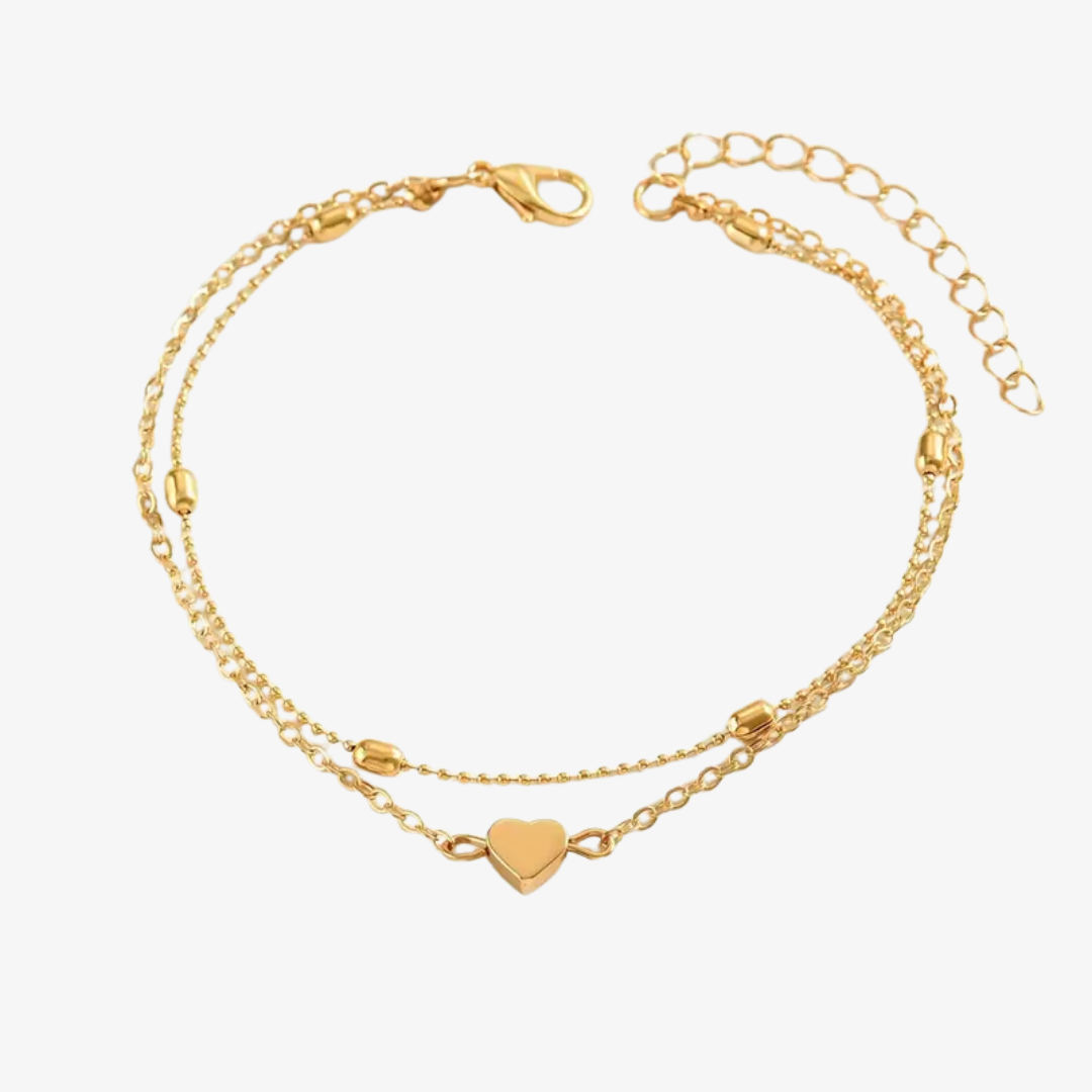 The Roma Gold Anklet is perfect for both casual and formal occasions. Made with 18k gold that is resistant to water, its layered composition exudes a delicate yet vibrant charm. Whether lounging by the pool or going on everyday excursions, this anklet is a striking fashion choice.