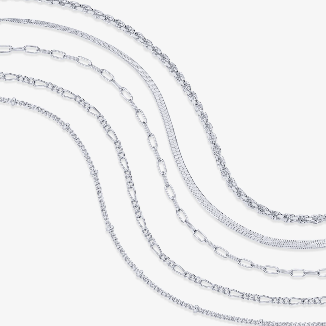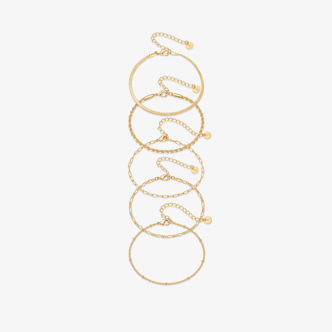Elevate your daily elegance with this curated five-pack of chain bracelets, each crafted to complement any style. Featuring delicate paperclip, snake, beaded, rope, and figaro chains, these versatile pieces allow you to wear a single subtle accent or layer them for a bold statement. Designed with sensitive skin in mind, they are free from nickel, cadmium, and lead, ensuring comfort without compromising on sophistication. Perfect for seamlessly enhancing any look with refined charm.