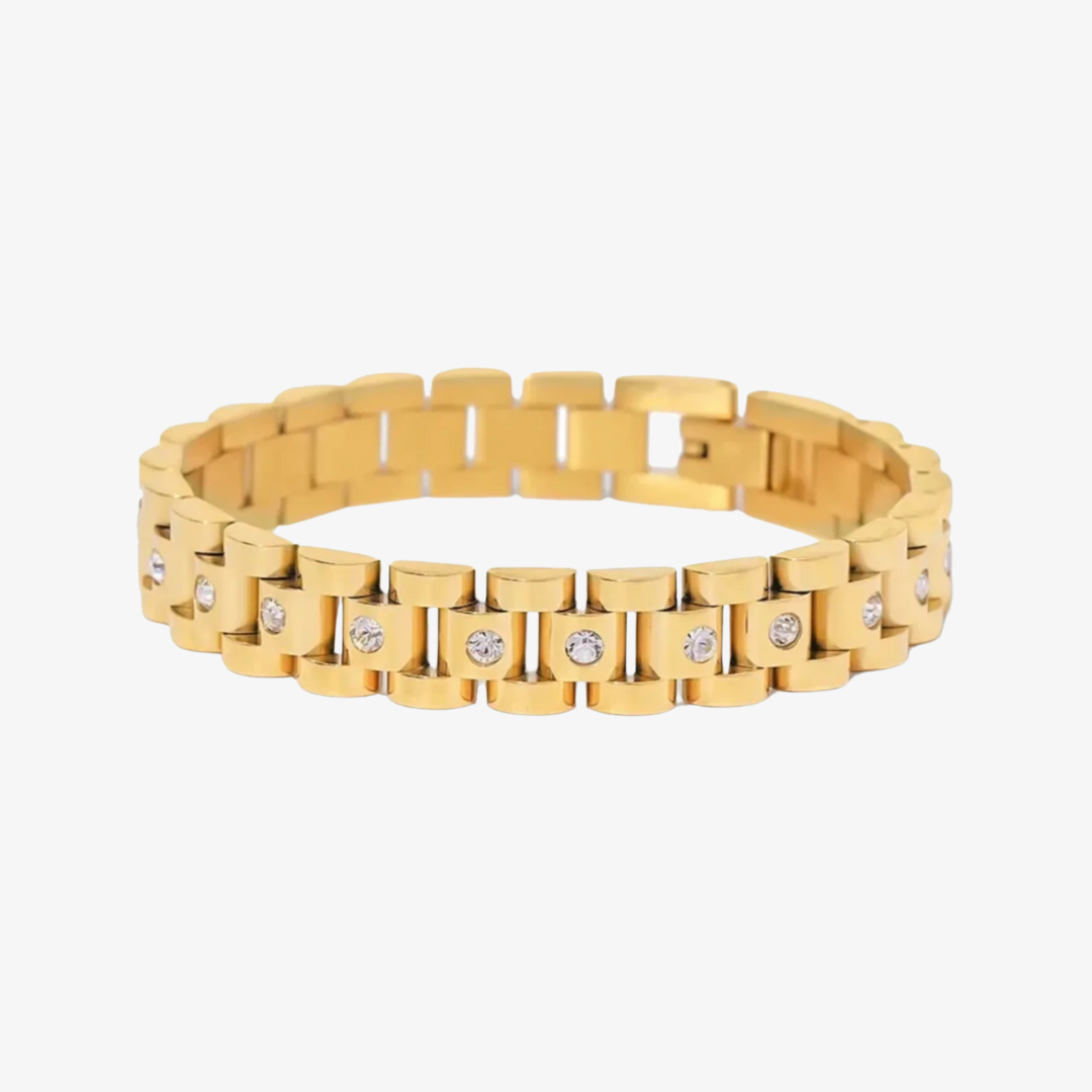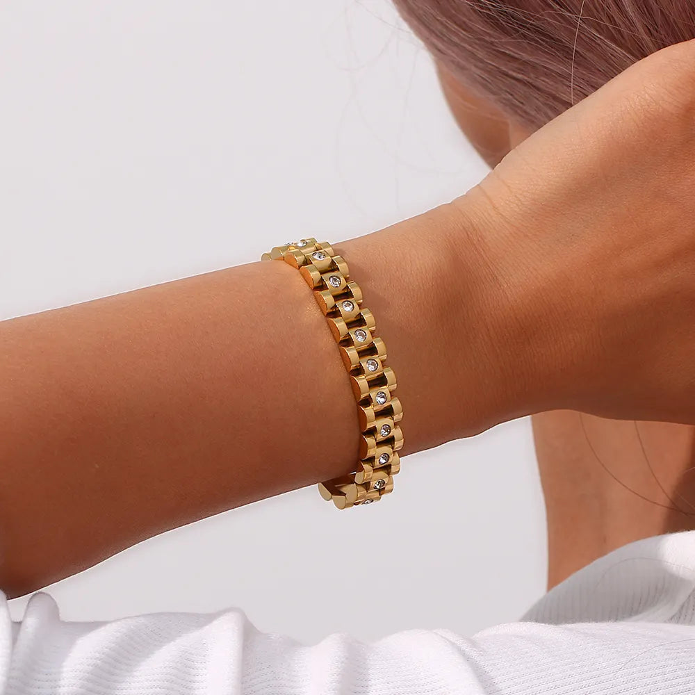 Watchband Bracelet isn't shy about being in the spotlight. This understated work of art showcases a delicate chain adorned with glittering diamond accents, resulting in a statement piece that exudes confidence and refinement.