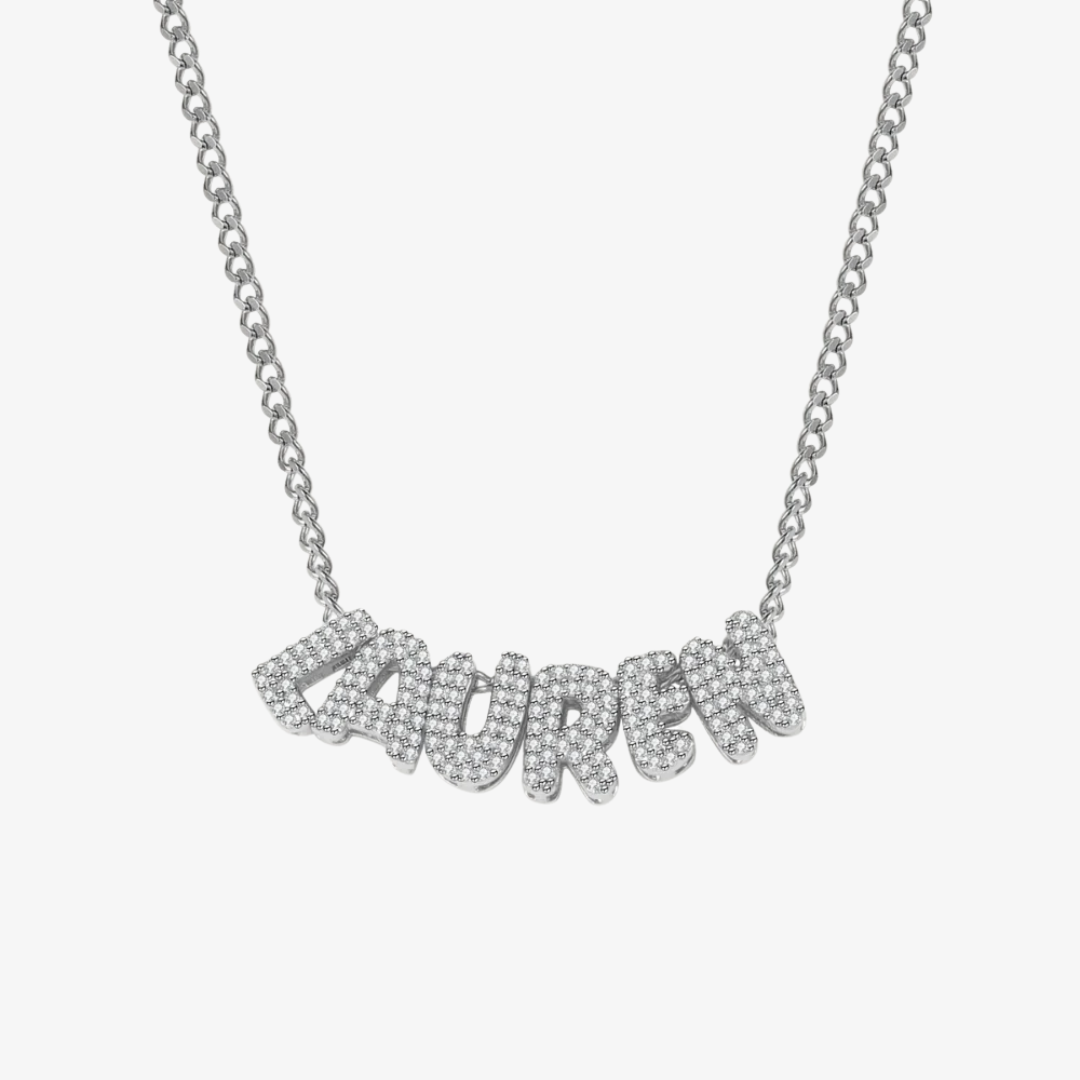 Indulge in luxury with the Azura Custom Bubble Diamond Name Necklace. Personalize this bespoke necklace with a name of your choice, making it the perfect gift for yourself or a loved one. Let the sparkling diamonds and exquisite design make a statement for any occasion. Elevate your style with this exclusive piece.