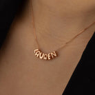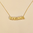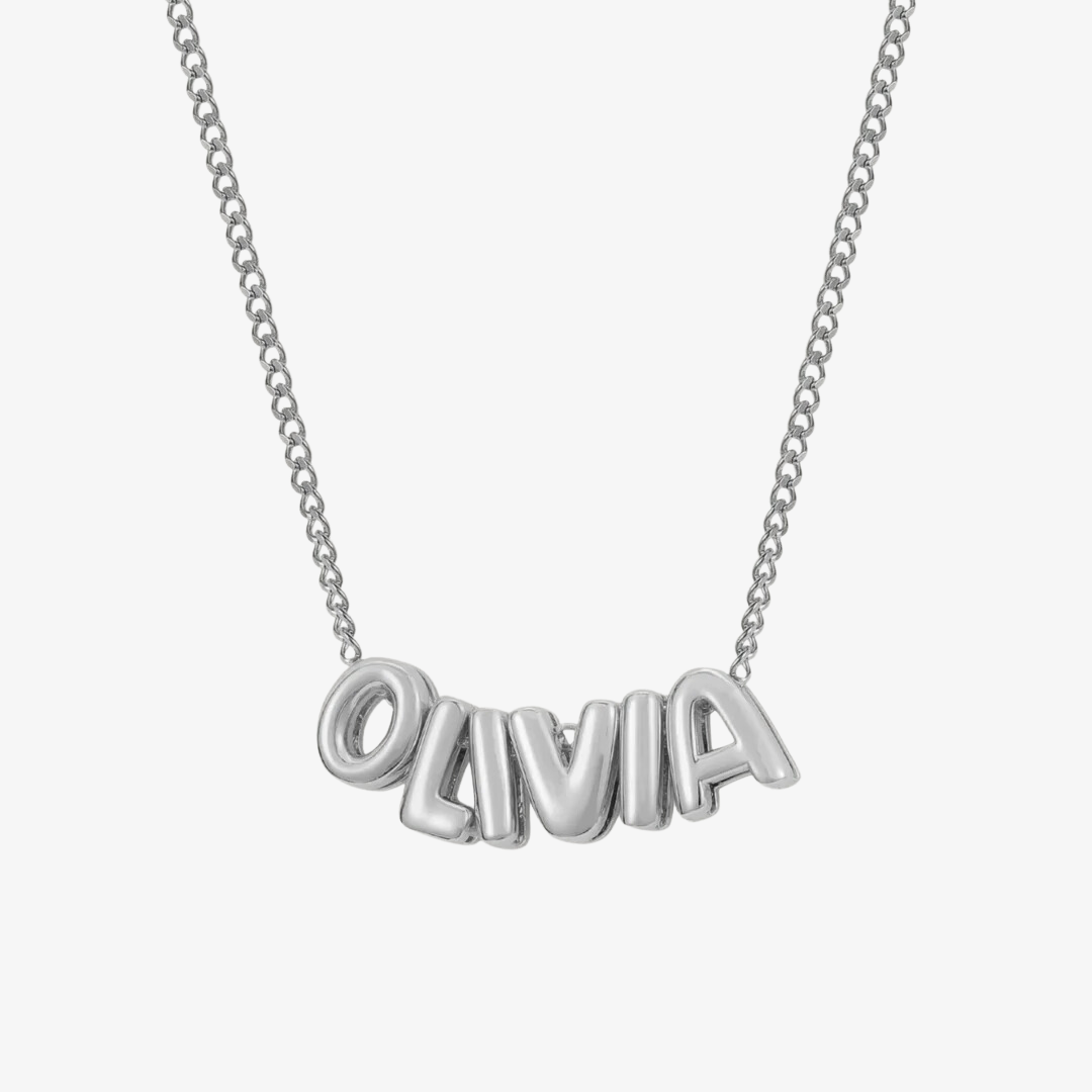 Introducing the Custom Name Bubble Necklace, a personalized statement piece perfect for a special someone. Each necklace is customized with your name, adding a touch of elegance and charm. Complete with a pearl chain, it makes for a luxurious and thoughtful gift. Elevate your style with this statement piece.