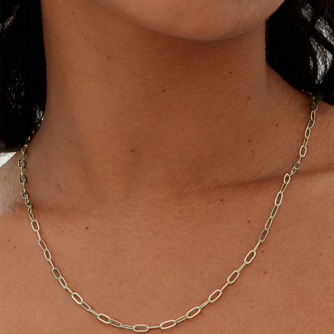 Elevate your everyday style with our sleek and sophisticated paperclip chain necklace. A versatile essential, it effortlessly adds a touch of elegance to any outfit, day or night. Perfect for the modern woman who appreciates both fashion and function.