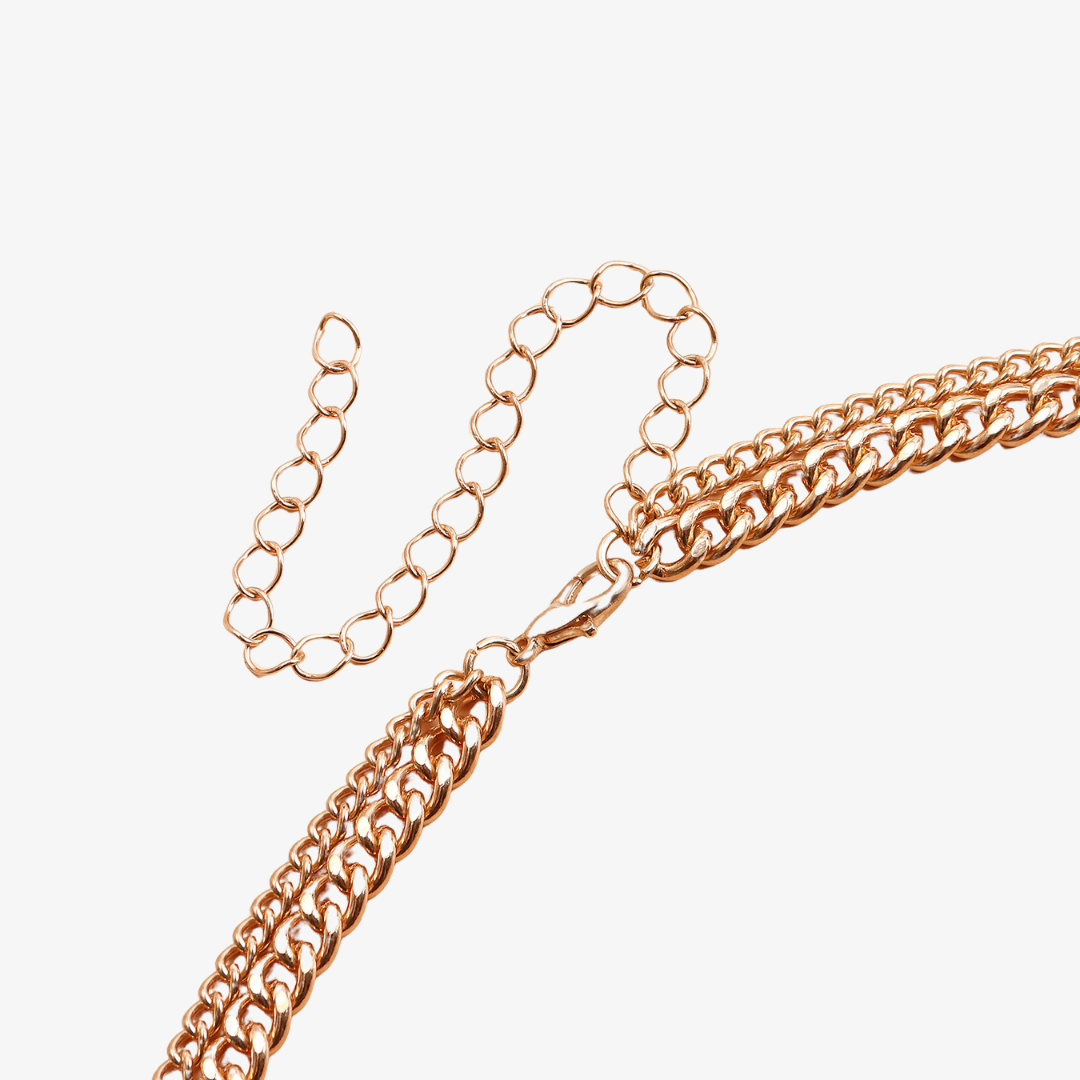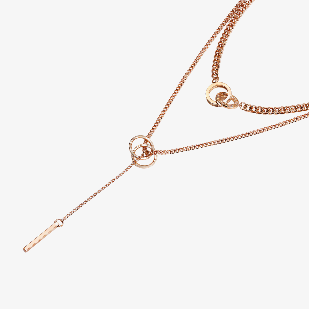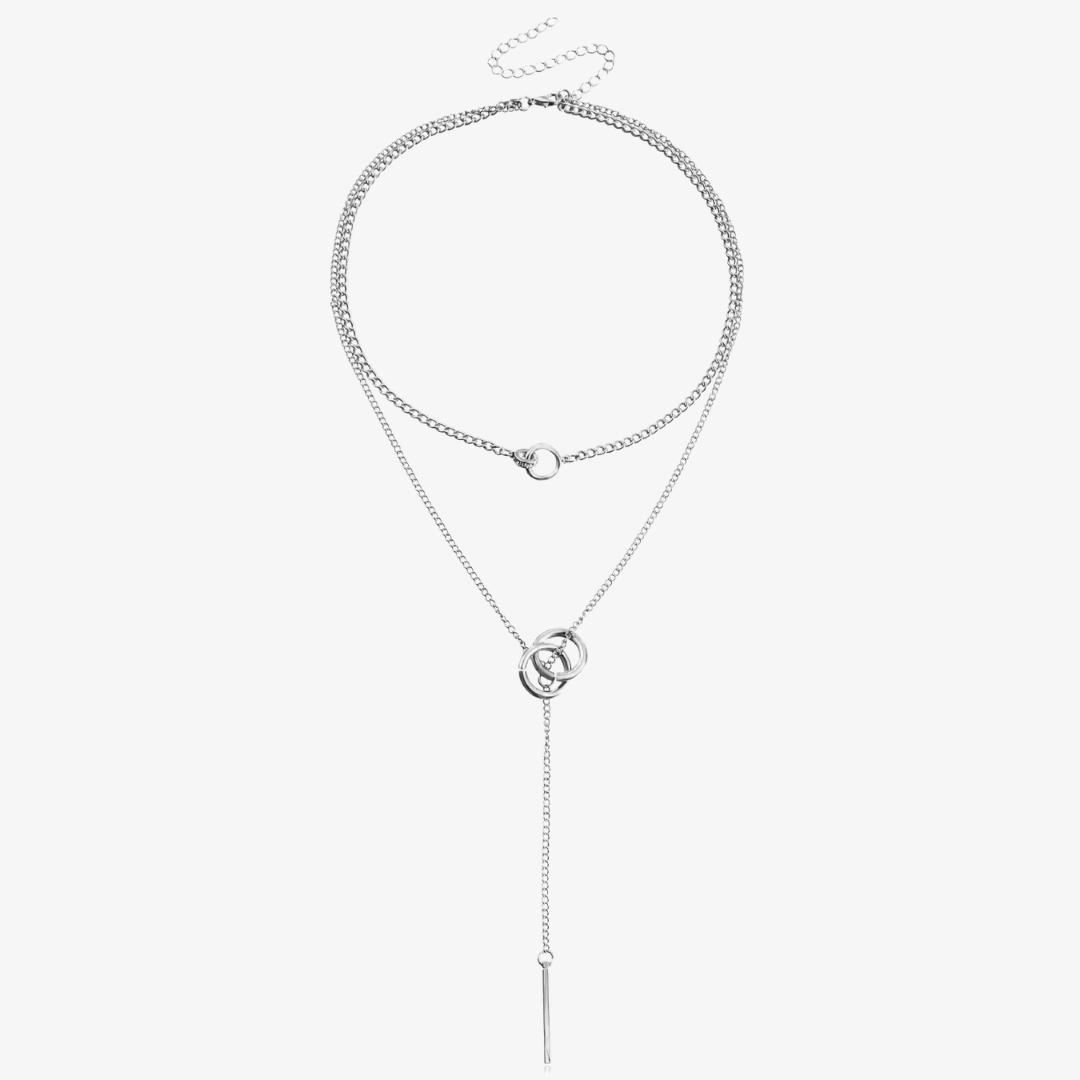 - Measurements: Inner Chain 41+10 cm / Outer Chain 52 cm / Linked Rings 1.5 cm / Vertical pendant 2.5 cm