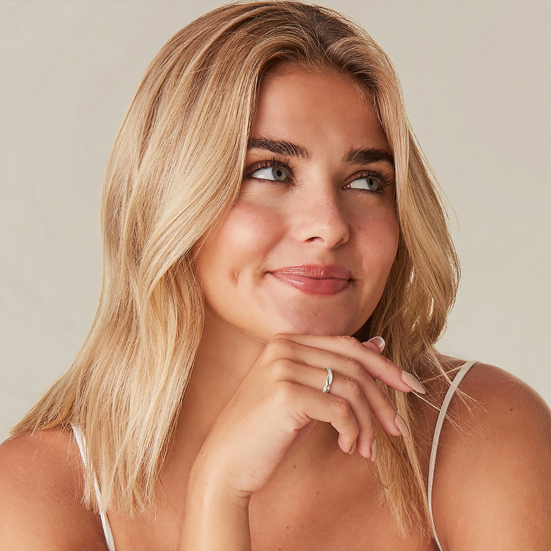 Indulge in the timeless elegance of our Twisted Eternity Band. The interwoven design, embellished with dazzling cubic zirconia, adds a touch of luxury to any look. Versatile for stacking or wearing alone, this ring effortlessly blends tradition with modern charm. Elevate your style with this chic and sophisticated piece.