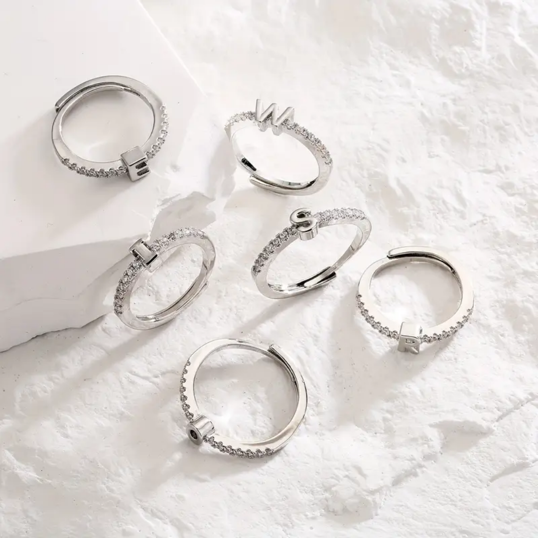 Introducing the Vienná Iced Initial Letter Ring, the perfect personalized accessory for those seeking a touch of elegance. With stunning zirconia diamond simulants and a stackable band, this ring is the epitome of luxury and exclusivity. Add a unique touch to any outfit with this sophisticated piece. Adjustable Open Ring Clasp.