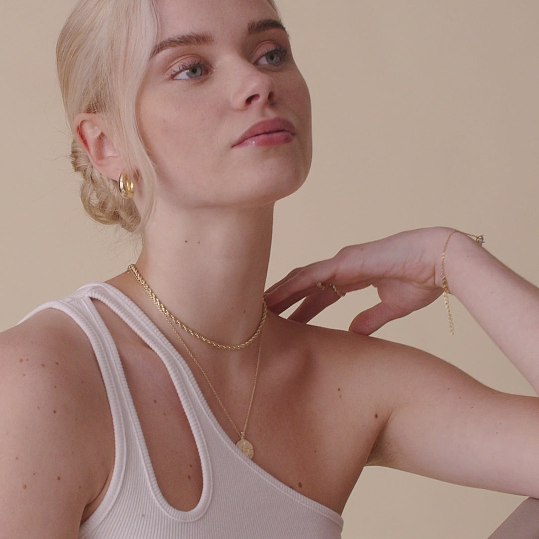 Our jewelry is made from high-quality stainless steel and finished with a luxurious layer of 14k or 18k gold or silver. This durable material resists tarnishing and fading, offering greater longevity than traditional gold, silver, or even platinum. It won’t discolor your skin and retains its brilliant shine over time.