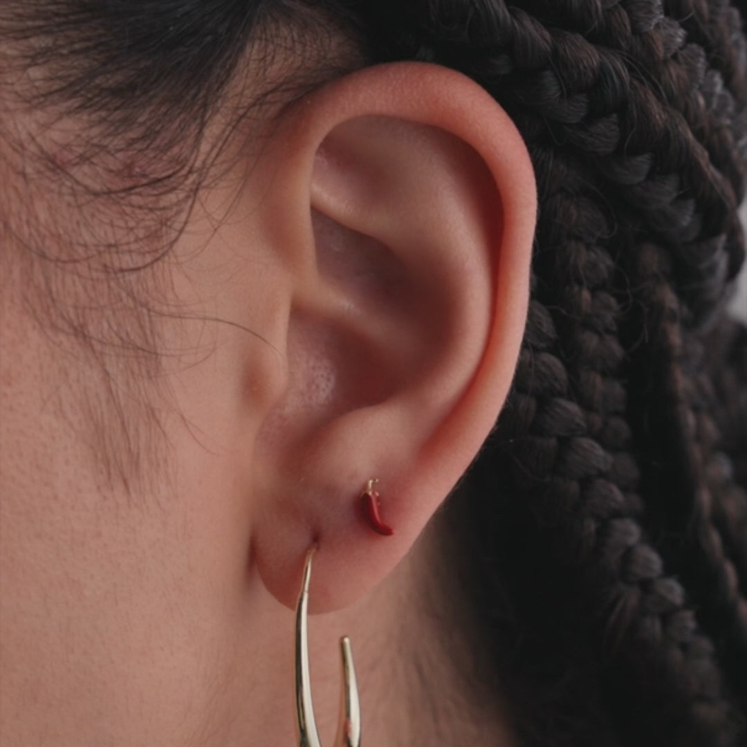 Elevate your ear game with these Chili Pepper Flat Back Studs, exquisitely plated in 14K gold. Their sleek design makes them ideal for layering across cartilage, lobes, helix, or conch, while also standing out beautifully on their own. Add a subtle yet striking touch of warmth and sophistication to your jewelry collection with these versatile studs.