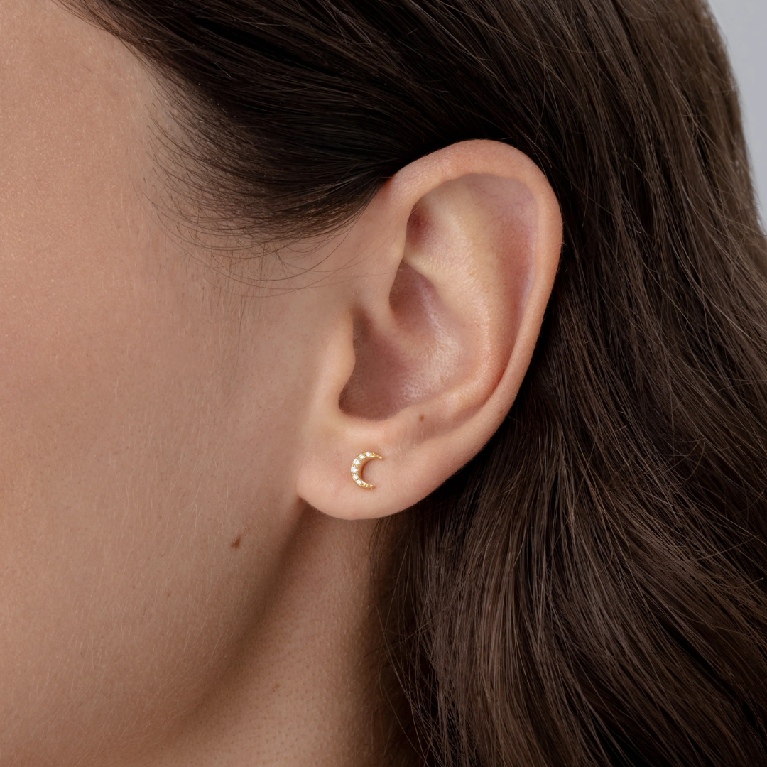 Elevate your evening look with the Cosmic Moon Flat Back Studs. Featuring crescent moon shapes adorned with sparkling cubic zirconia stones, these flat back earrings offer a refined touch of celestial elegance. Perfect for adding subtle glamour to a night out, they combine comfort with sophisticated style.
