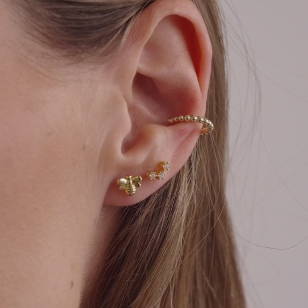 These Honey Bee Flat Back Studs offer a delicate and refined touch to your jewelry collection. Crafted with 14K gold plating, their charming bumble bee design adds a subtle yet distinctive accent, perfect for elevating any stud stack with understated elegance.