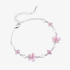 The Sakura Cherry Blossom Crystal Bracelet is adorned with numerous sparkling diamonds that catch the light brilliantly, drawing admiration in any setting. This elegant creation exudes timeless sophistication, whether illuminated by natural daylight or soft evening glow, enhancing any outfit with its graceful charm. An ideal gift to honor treasured friendships with enduring luxury.
